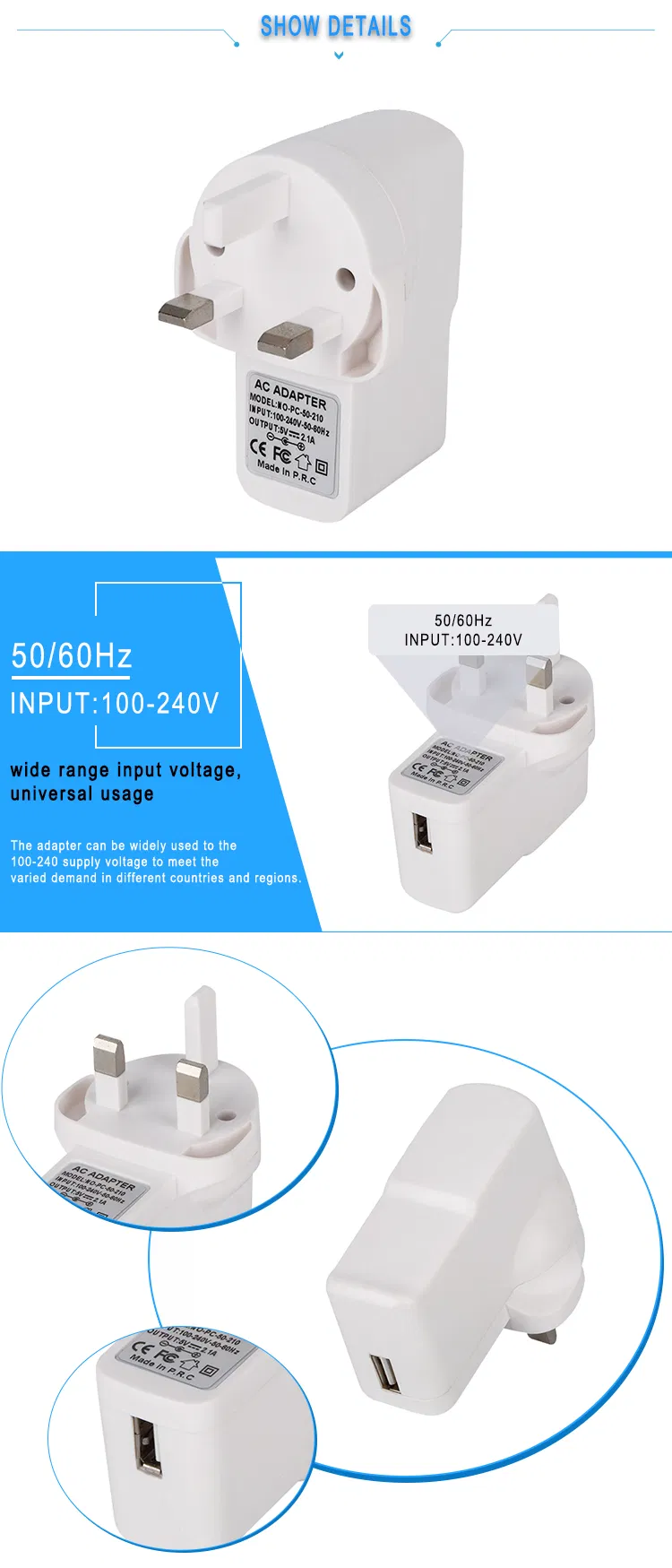 Product Introduction: EU AU US UK Plug Wall Charger